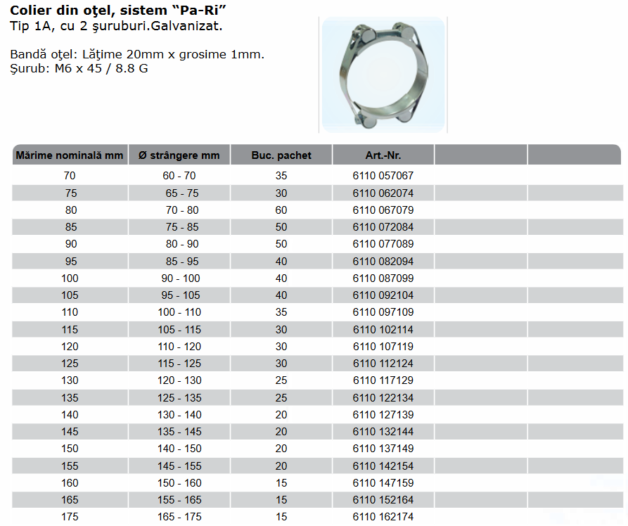 Colier sistem “Pa-Ri” Tip 1A, cu 2 şuruburi