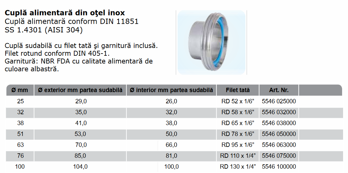 Cuplă sudabilă cu piulită filet tata