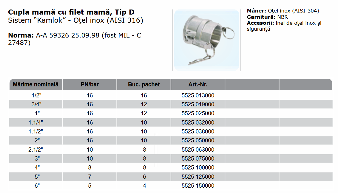 Kamlok mamă, filet mamă, Tip D