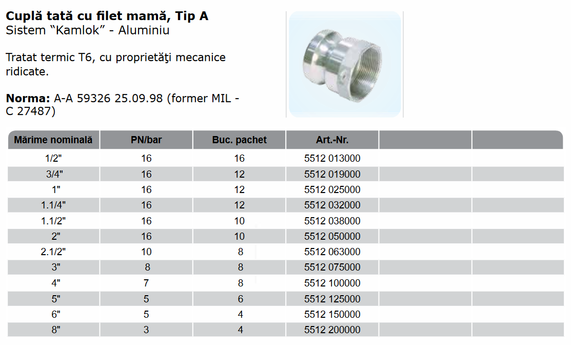 Kamlok tată cu filet mamă, Tip A
