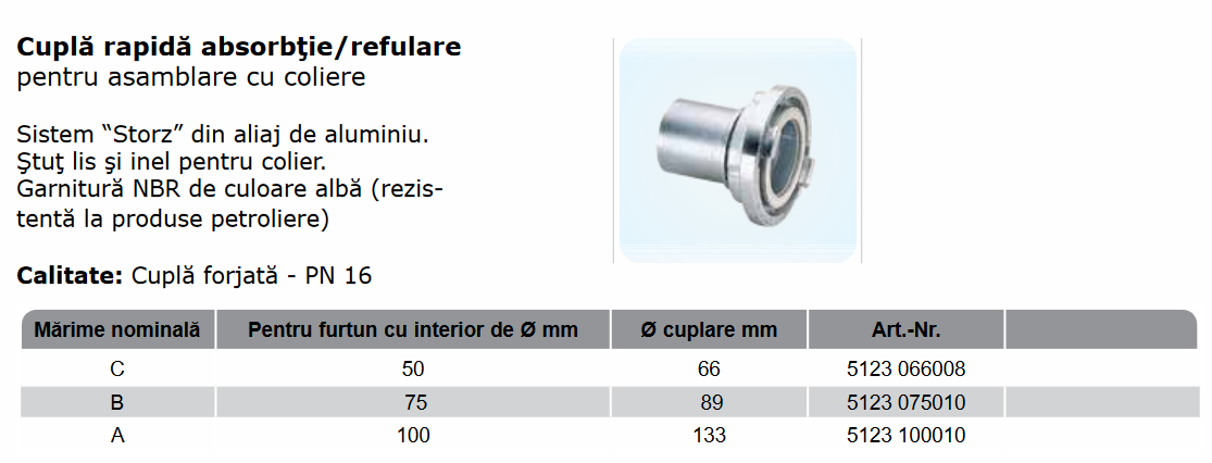 Storz cu ştuţ furtun neted