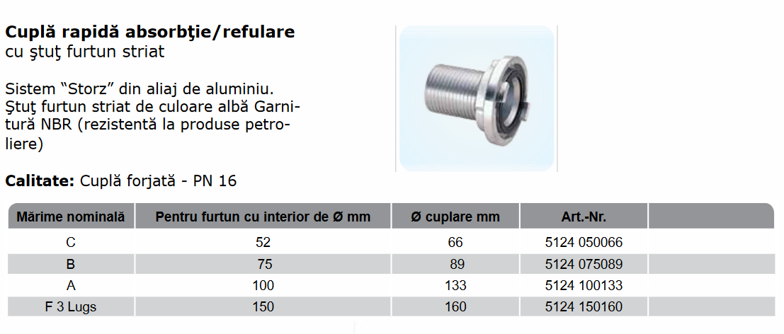 Storz cu ştuţ furtun striat