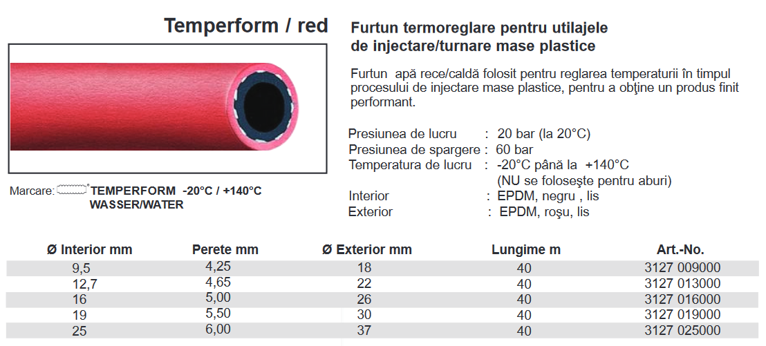Furtun EPDM apă rece/caldă , 20 Ba