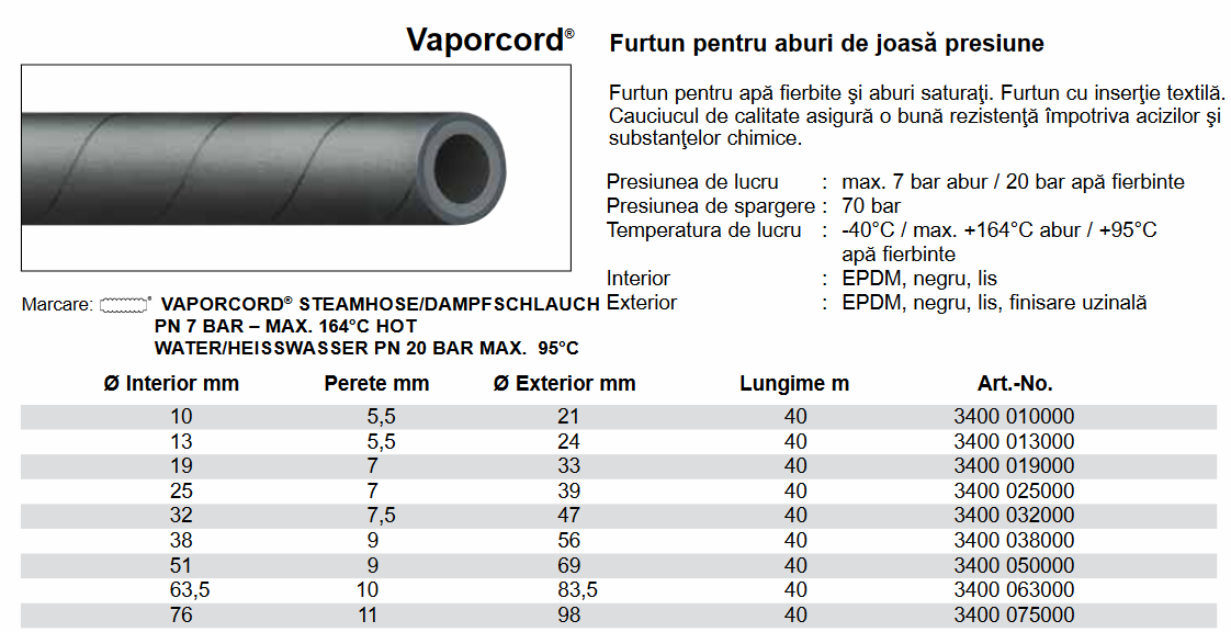 Furtun pentru aburi saturaţi, 7 Bar