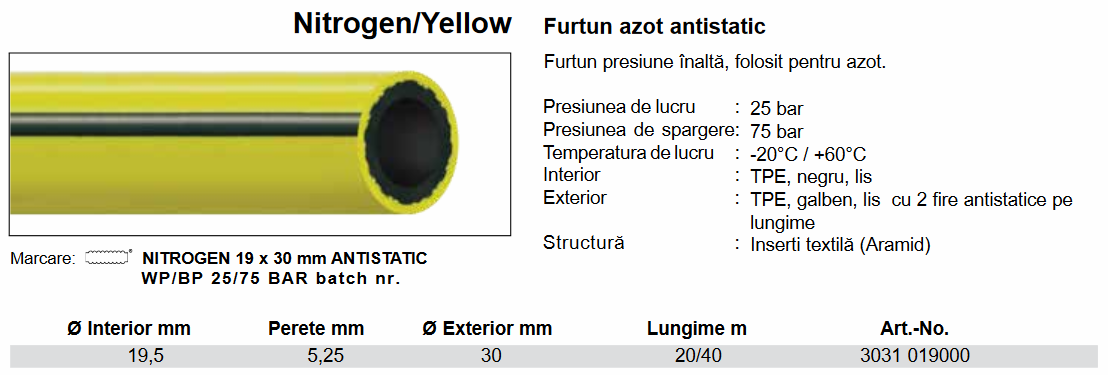 Furtun azot antistatic, 25 bar