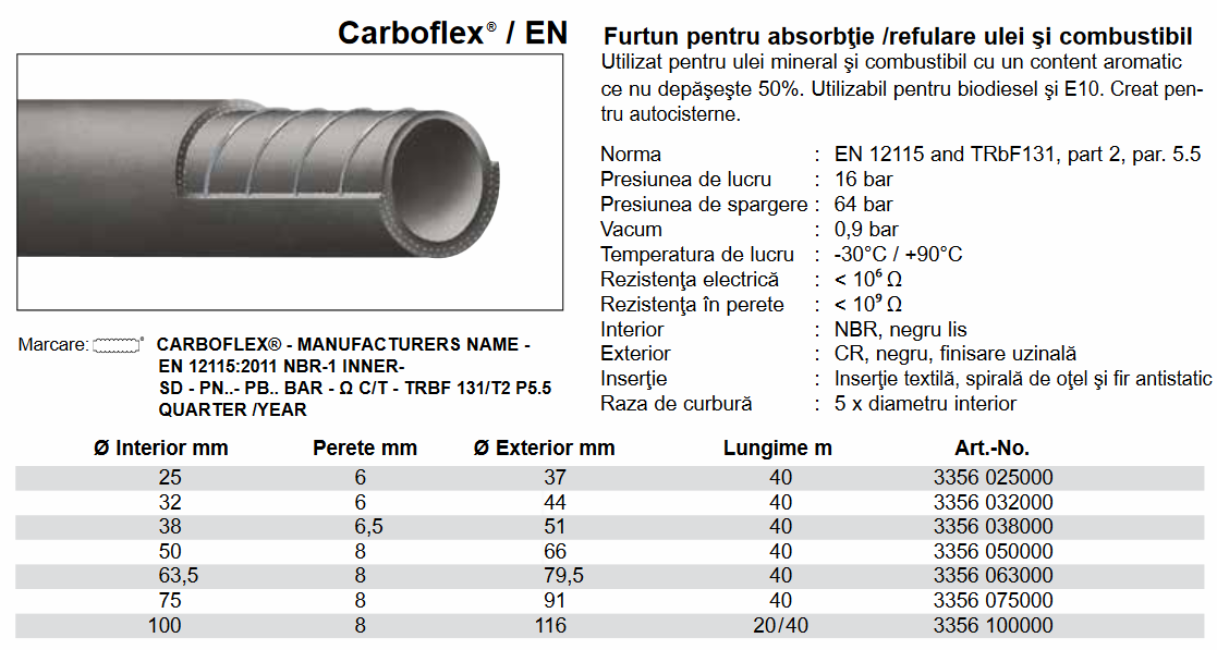 Furtun cauciuc absorbtie /refulare ulei si combustibil, 16 Bar