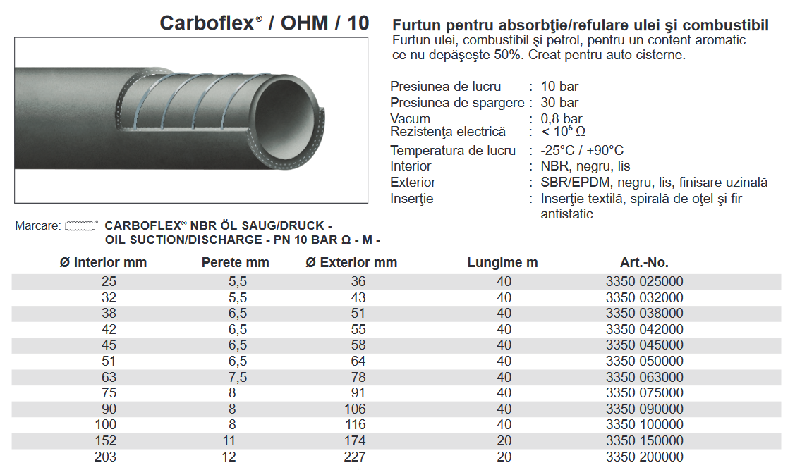 Furtun cauciuc absorbţie/refulare ulei şi combustibil, 10 Bar