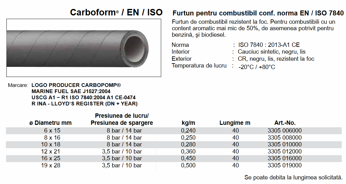 Furtun combustibil EN / ISO 7840, 8 Bar