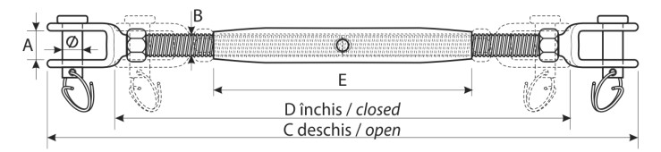 Întinzători cablu furcă-furcă realizați din oțel inoxidabil AISI 316.