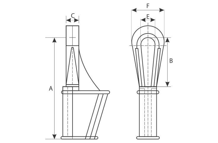 Terminațiile de cablu (papucii cablu) care se montează cu ajutorul unei pene de fixare amplasată în interior sunt cel mai ușor de montat dintre toate terminațiile de cablu, montajul acestora făcându-se prin rularea cablului în jurul penei de fixare și apoi prin aplicarea unei bride de strângere pe capătul liber al cablului.