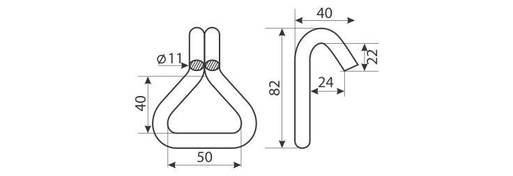 Cârligele pentru chingi ancorare se folosesc pentru chingi având lățimea de 50 mm și capacitatea de 5 tone.