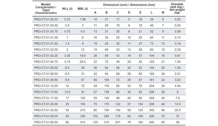 Cheie tachelaj omega (ancoră), model PRO-CT.01.