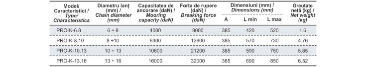 Întinzător pentru lanț cu clichet și siguranțe la cârlige tip PRO-INTCheie tachelaj omega cu piuliță și siguranță, seria grea tip PRO-CTSG