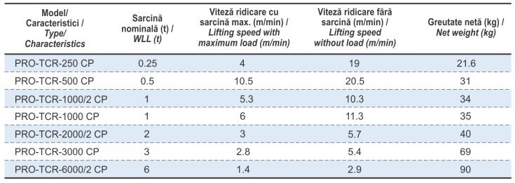 Opţional se pot furniza palane cu capacităţi de până la 100 tone.