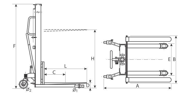 Acest tip de transpalet poate fi folosit atât pentru ridicarea / coborârea sarcinilor, cât şi pentru transportul acestora pe distanţe scurte.