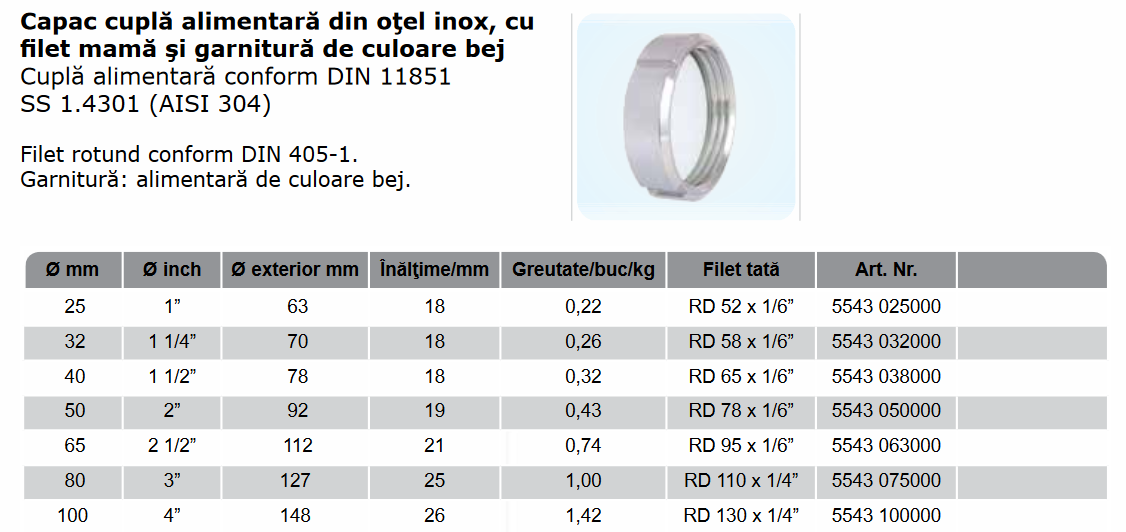 Capac cuplă alimentară, cu filet mamă