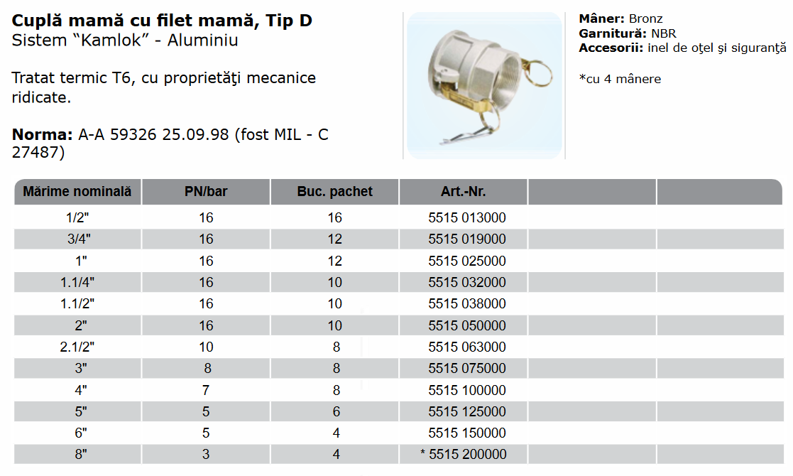 Kamlok mamă, filet mamă, Tip D