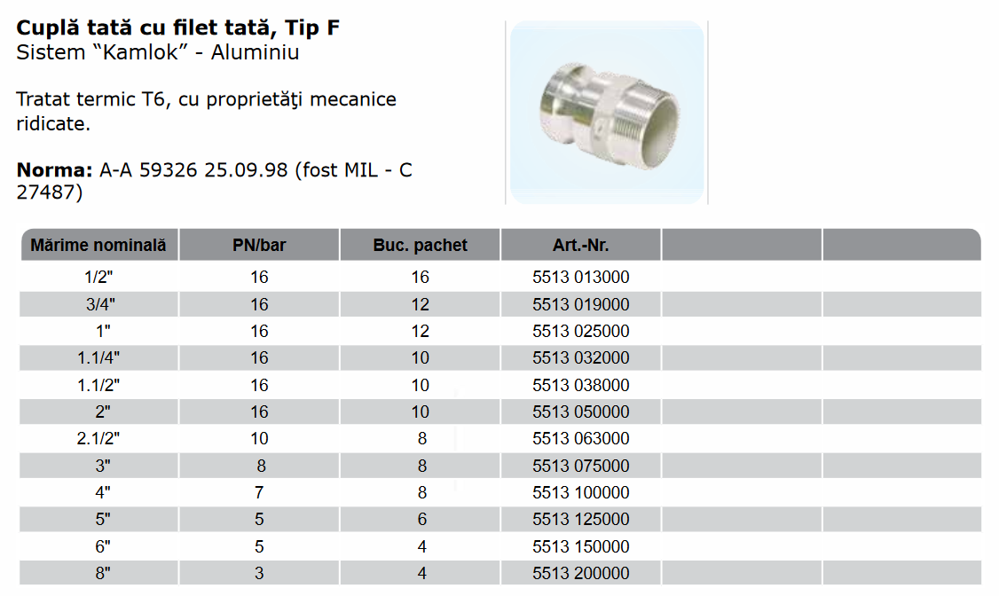 Kamlok tată cu filet tată, Tip F