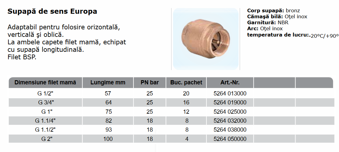 Supapă de sens Europa