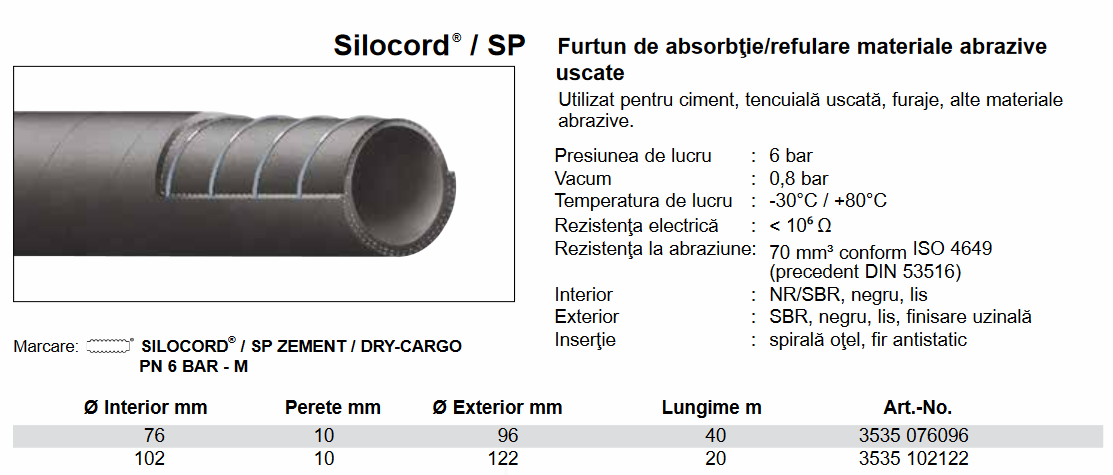 Furtun abraziv, absorbţie, 6 Bar