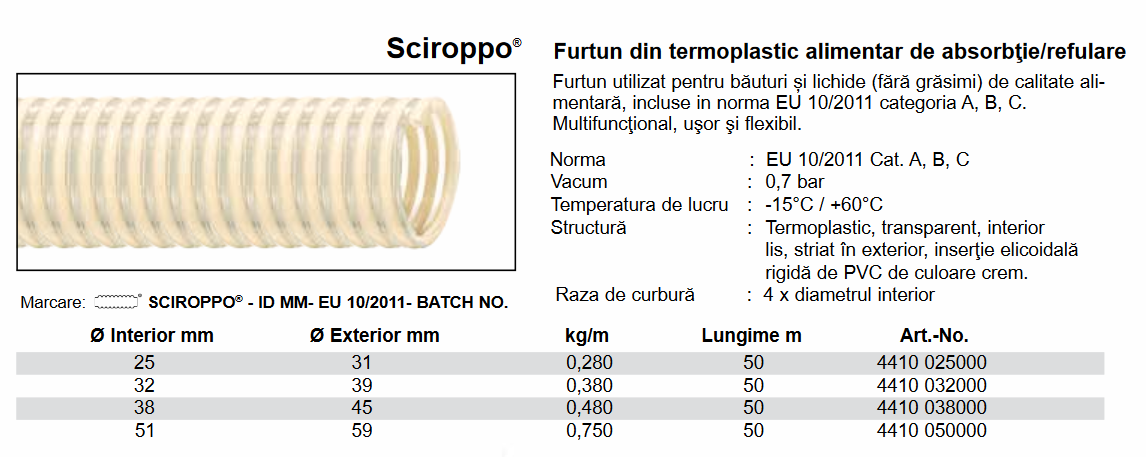 Furtun din PVC de absorbţie/refulare