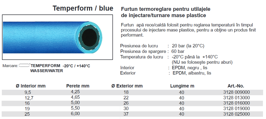 Furtun EPDM apă rece/caldă , 20 Bar