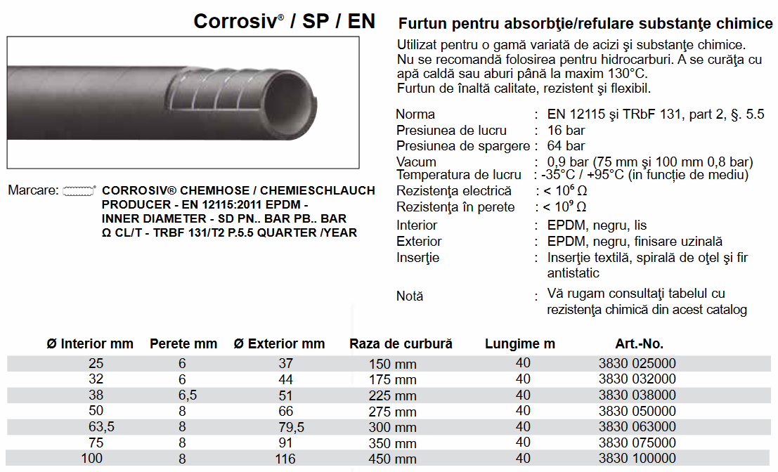 Furtun EPDM absorbtie/refulare substanţe chimice, 16 Bar