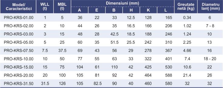 Inelul rotativ de prindere permite o flexibilitate maximă și o rotire 360°, evitându-se rotirea sarcinii în cârlig dar și răsucirea lanțului.