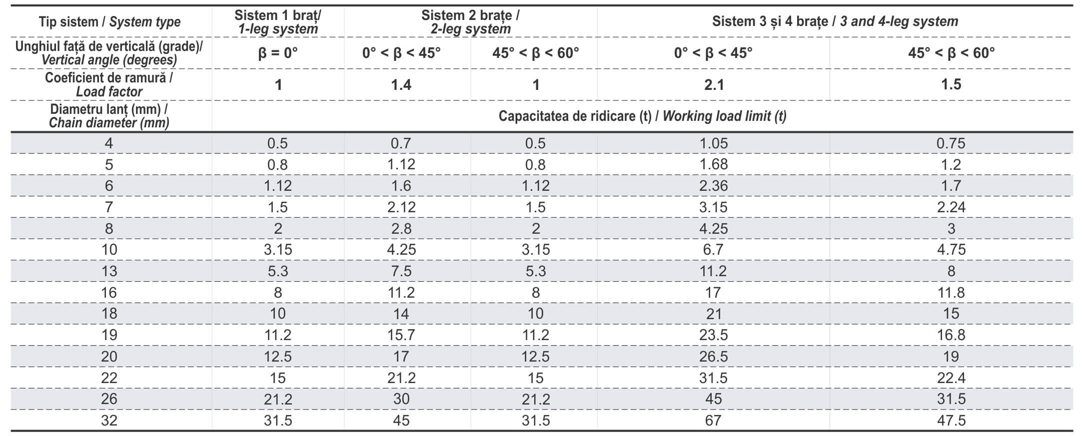 Sunt rezistente atât la tăiere cât şi la frecare, capacitatea de ridicare a acestora fiind aceeași până la 200°C, fără a fi redusă. Peste această temperatură capacitatea de ridicare scade procentual. Confecţionate din aliaj de oţel de înaltă calitate, sistemele de ridicare cu lanţ sunt construite, de obicei, din oţel grad 80, care este considerat standard în industrie.
