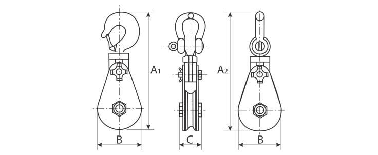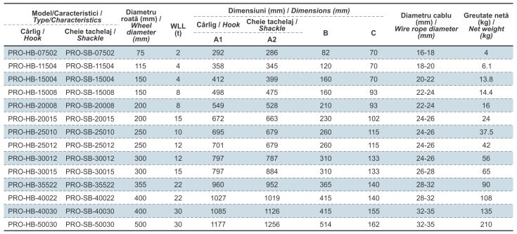 În funcţie de necesităţile utilizatorului, sunt prevăzuţi, ca sistem de prindere, cu cârlig sau cu cheie de tachelaj.