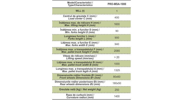 Acest transpalet are o stabilitate excelentă, rotire flexibilă, operare confortabilă, siguranţă ridicată în exploatare.