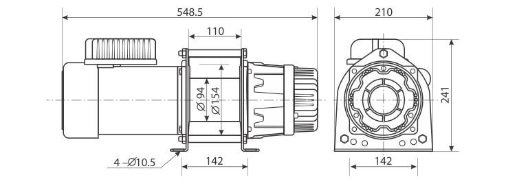 - flanşă de închidere pentru a preveni blocarea cablului între tambur şi suport;